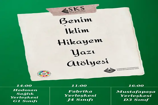 Sürdürülebilirlik Ofisi ve Sürdürülebilir Kalkınma Topluluğu iş birliğiyle düzenlenen “Benim Hikâyem” Yazı Atölyesi, kalemin gücünü keşfetmek isteyen tüm öğrencilerimizi bekliyor!