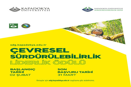 Çevresel Sürdürülebilirlik Liderlik Ödülü’ne başvurmak isteyen öğrencilerimiz, yukarıda yer alan başvuru evraklarını hazırlayarak, 31 Mart 2026 tarihinden önce KÜN Sürdürülebilirlik Komisyonunun e-posta adresine surdurulebilirlik@kapadokya.edu.tr göndermelidir.