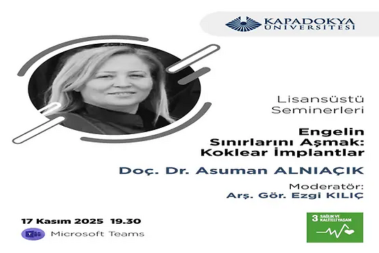 Doç. Dr. Asuman ALNIAÇIK’ın konuşmacı olarak yer alacağı bu seminerde, işitme kaybı yaşayan bireyler için koklear implantların sunduğu olanaklar ve yaşam kalitesine katkıları ele alınacaktır.
